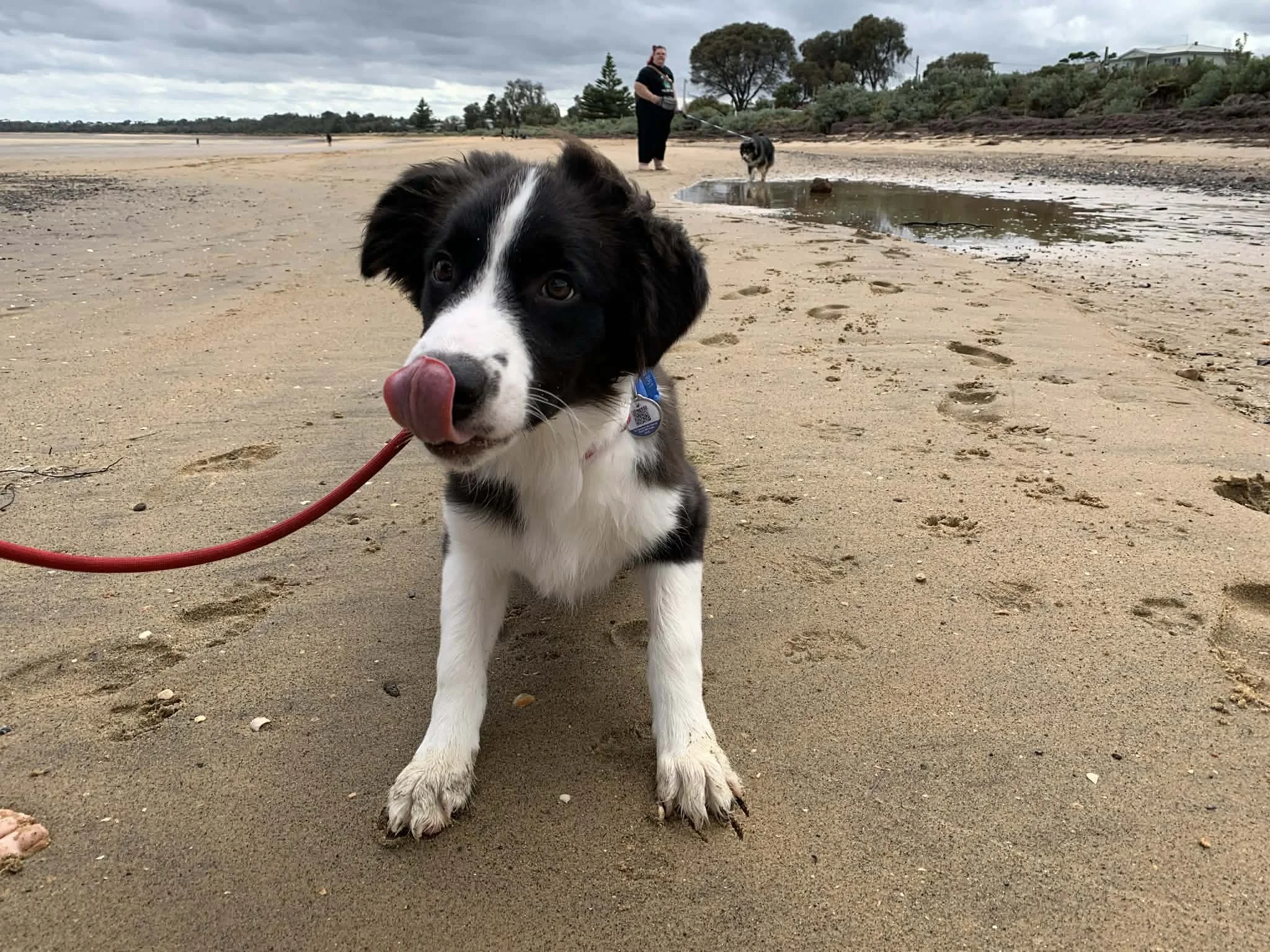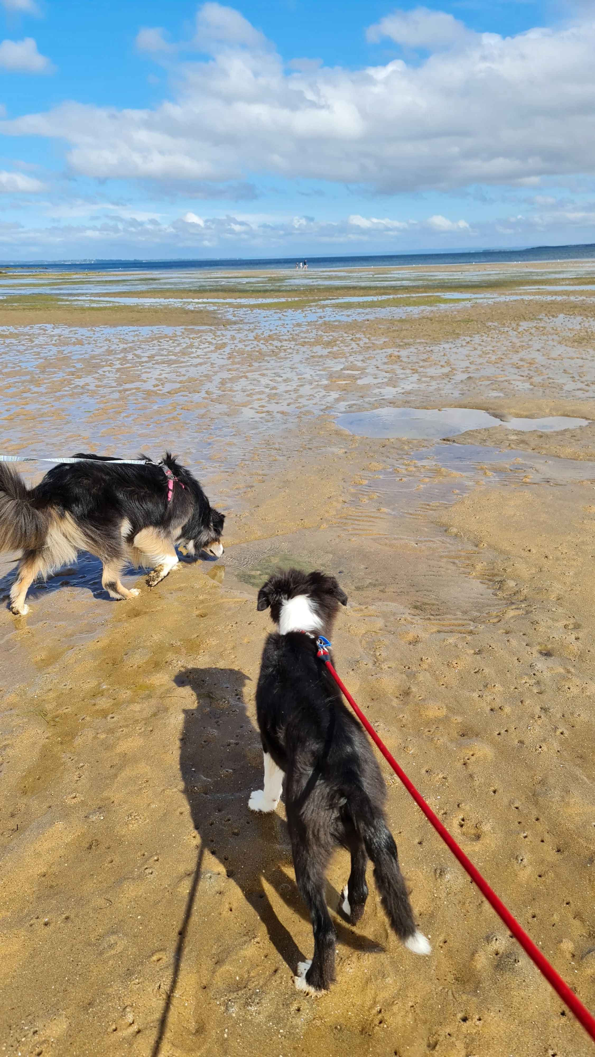 Coronet Bay has several dog-friendly beach areas, and we wandered down to one of the nearby stretches early in the morning. The tide was out, leaving a wide expanse of sand for the dogs to explore and sniff.