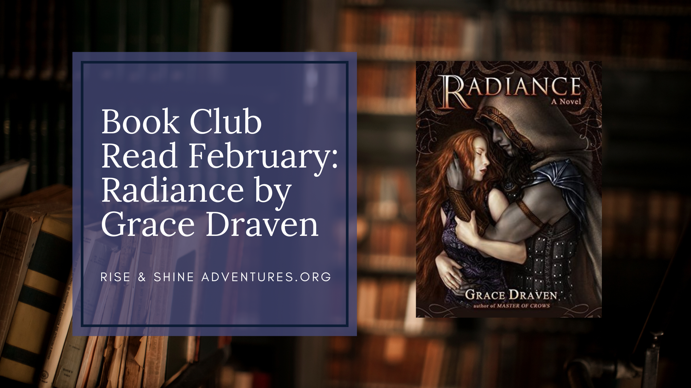 For Feb we read Radiance by Grace Draven. The story begins with our couple on their wedding day. They are two different species and are being married off to set an alliance in place between their kingdoms. He is grey, has giant razor-sharp teeth and claws, and alien eyes that are all one color. Here is what she says about his appearance: